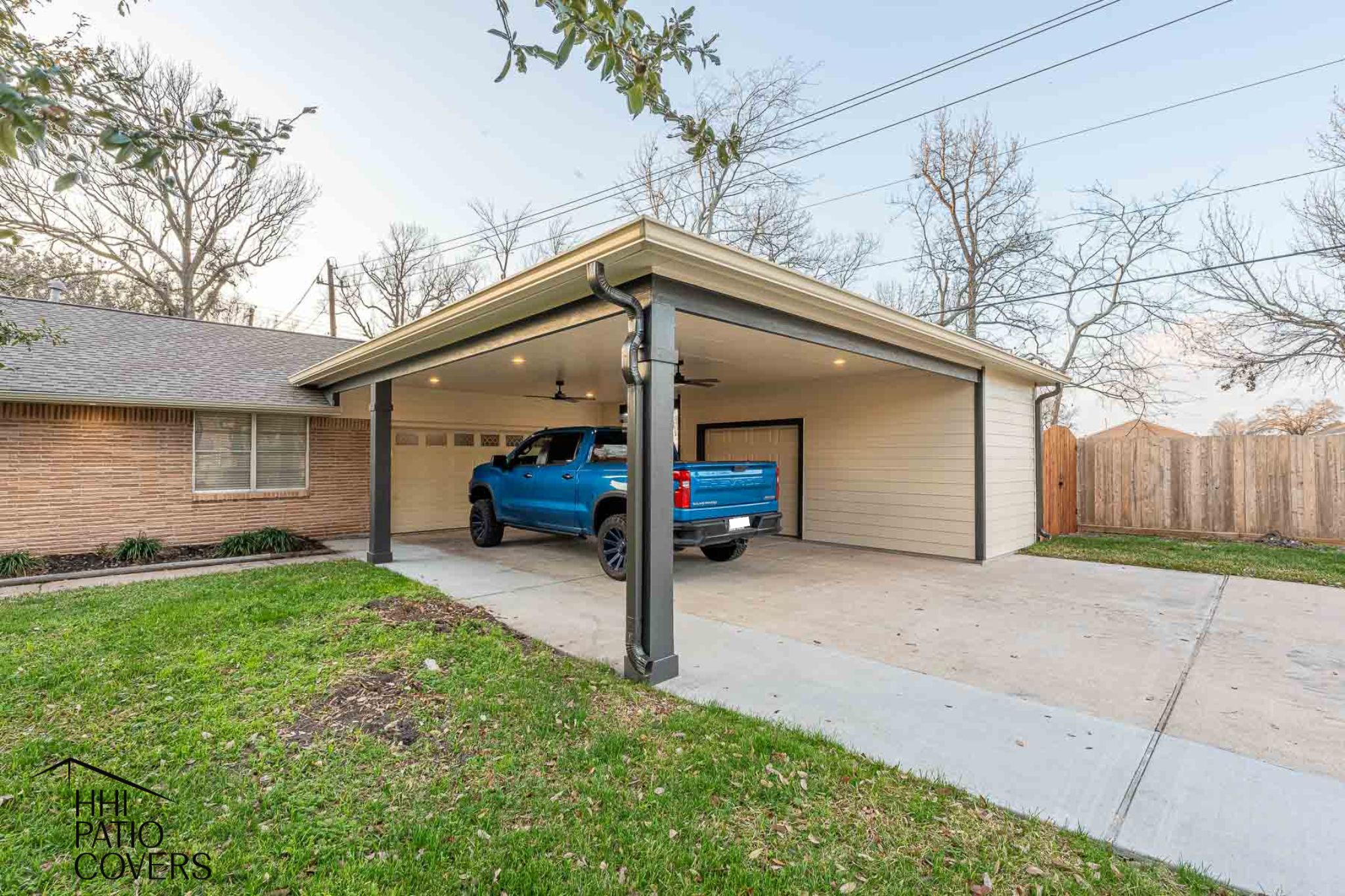 Looking for a custom carport or storage solution that blends perfectly with your home? Contact HHI Patio Covers today for a free consultation!