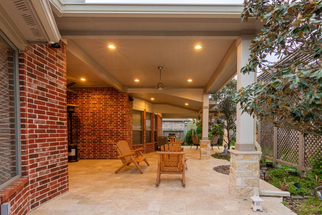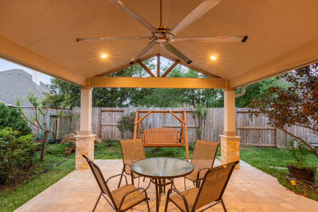 Patio Cover Size: L-Shape Hip patio cover 24.5’x13′ and gable patio cover 18’x19.5′