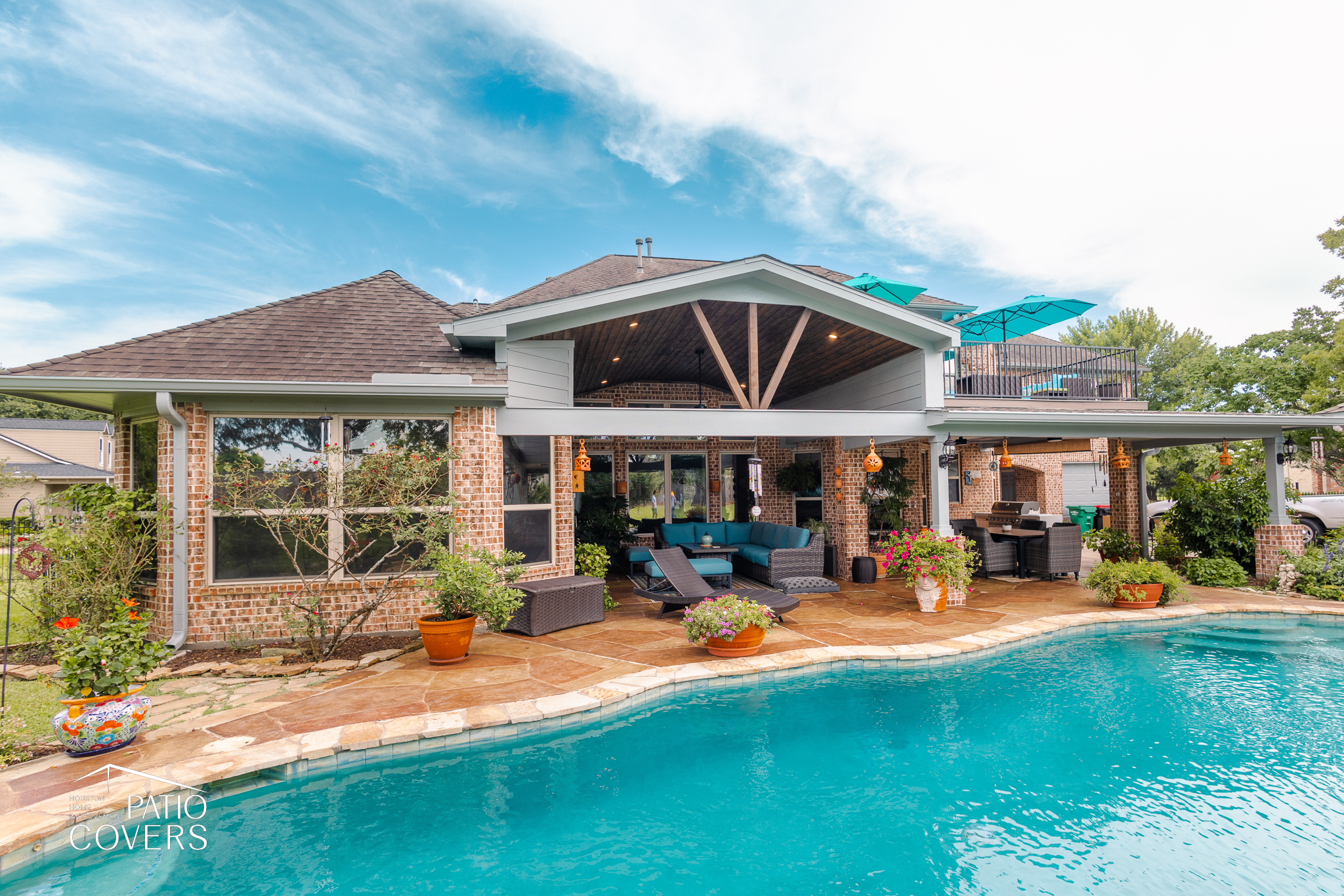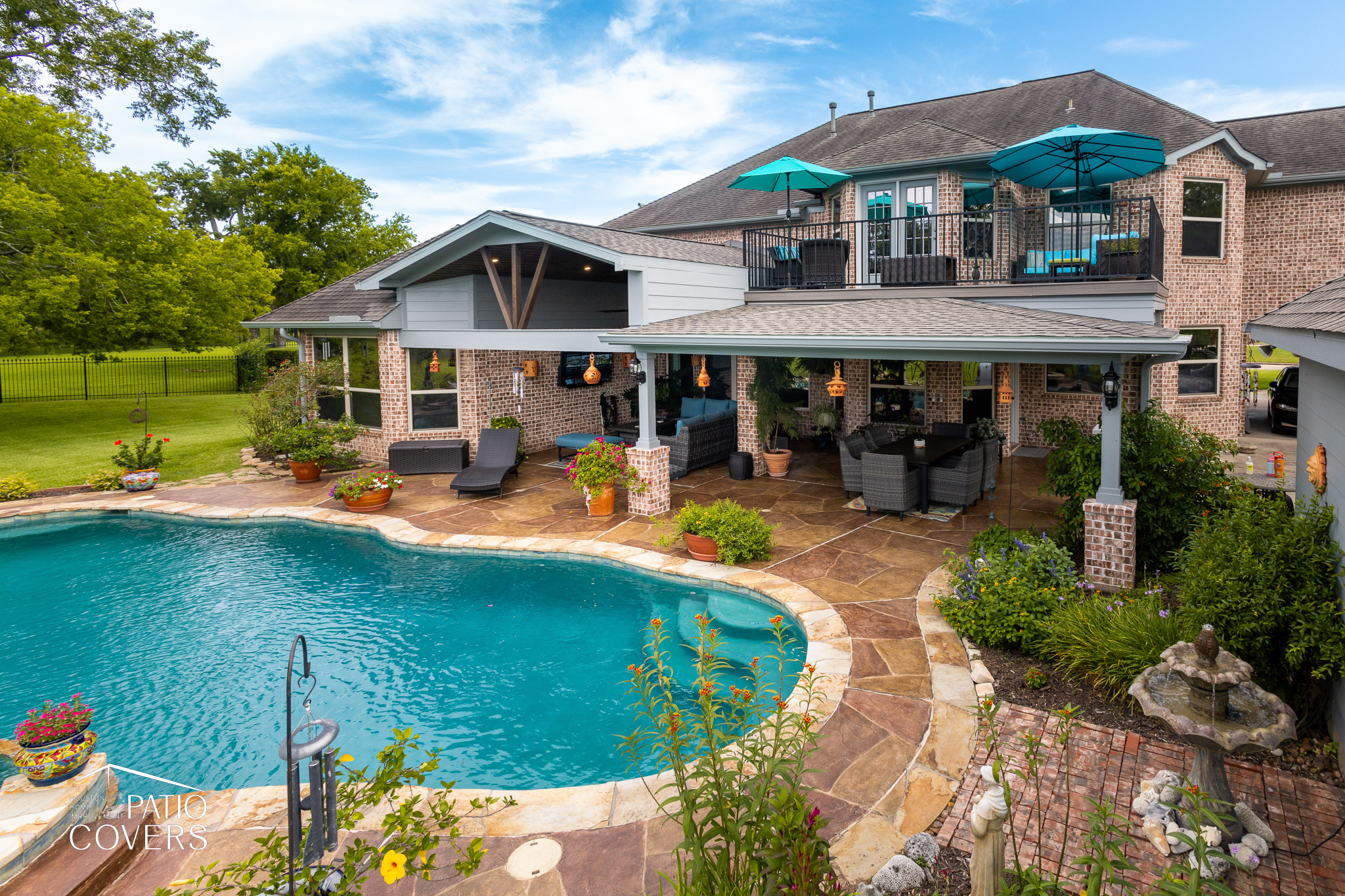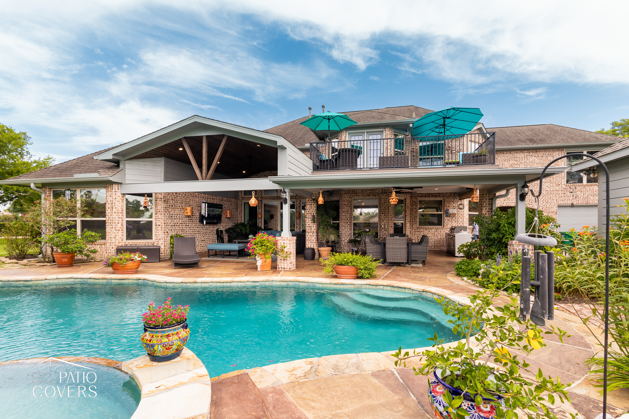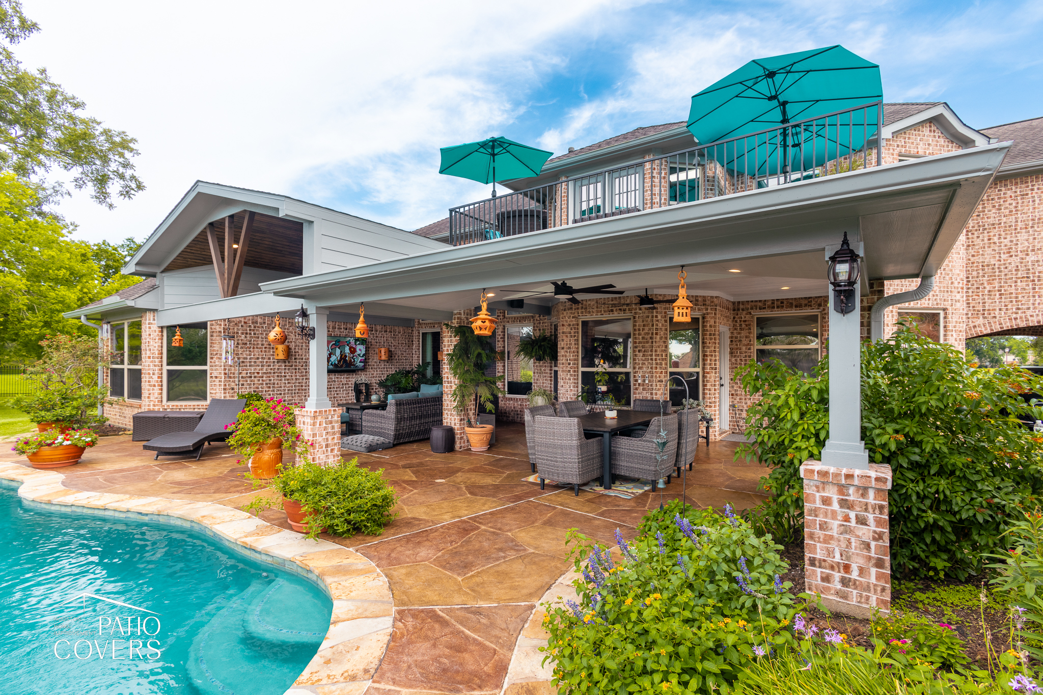 Missouri City Patio Cover Extension with Balcony Integration