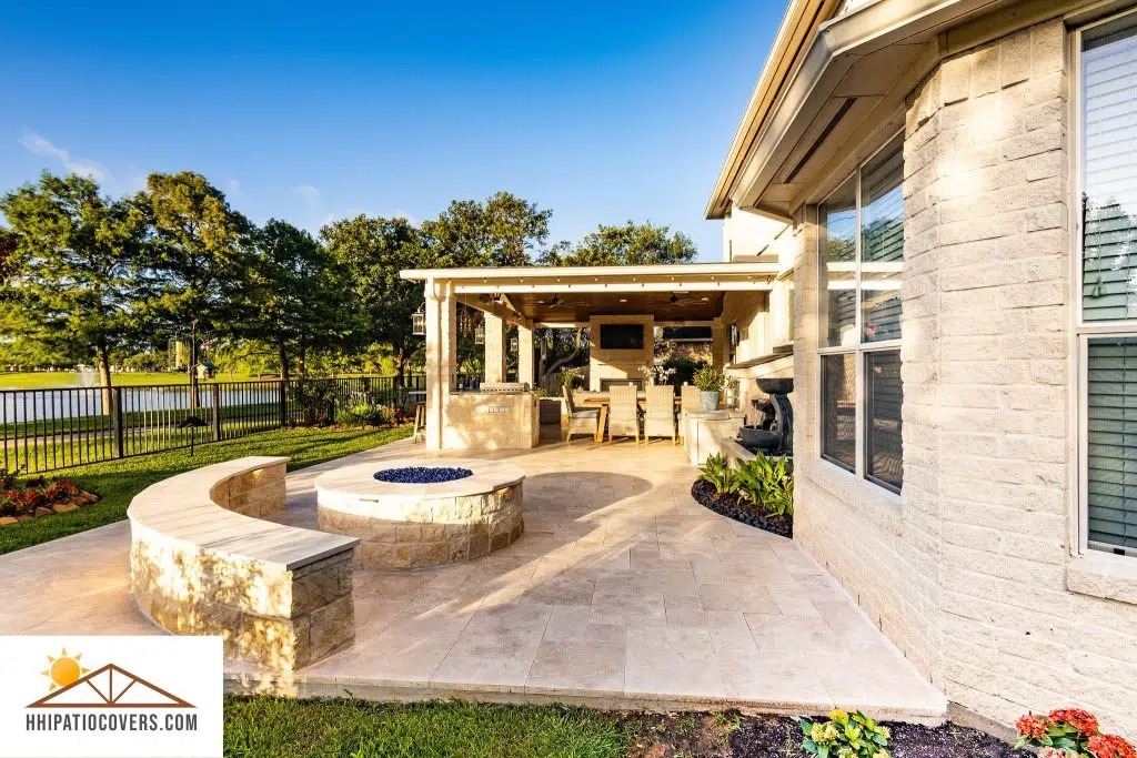Additional Features: Outdoor kitchen, custom built fireplace, fire-pit seating area with custom built limestone benches, and custom water feature.